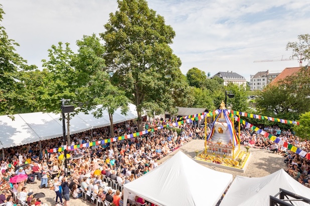 On July 20, 2019, the Victory Stupa, also known as Long Life Stupa, built in the garden of the Copenhagen Diamond Way Buddhist Center, was inaugurated. Many hundred Buddhists from all over the world joined the consecration ceremony with Maniwa Lama Sherab Gyaltsen Rinpoche and Lama Ole Nydahl. The Copenhagen Buddhist Center was one of the first Centers founded by Lama Ole and Hannah Nydahl. It was bought in 1975 and they themselves lived in it whenever they spent time in their hometown. The center is referred to as the “Mother Center” of Diamond Way Buddhist Centers.