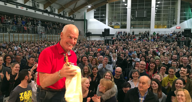 On the night of his 75th birthday on 19th March 2016, Lama Ole Nydahl gave teachings in Warsaw. About 4,000 students congratulate him during the lecture.